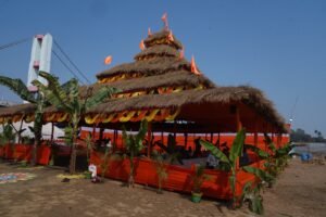 राजिम कुम्भ कल्प के मुख्य मंच को इस वर्ष विशेष रूप से आकर्षक स्वरूप दिया गया है। लगभग 60 फीट चौड़े और 80 फीट लंबे इस विशाल मंच की पृष्ठभूमि में पंचकोशी धाम के प्रमुख मंदिरों की सजीव झलक श्रद्धालुओं को आध्यात्मिक अनुभूति करा रही है। भगवान श्री राजीवलोचन एवं कुलेश्वरनाथ महादेव के साथ पटेश्वरनाथ (पटेवा), चम्पकेश्वरनाथ (चम्पारण), ब्रह्मकेश्वरनाथ (ब्रह्मनी), फणीकेश्वरनाथ (फिंगेश्वर) और कोपेश्वरनाथ (कोपरा) के मंदिरों की प्रतिकृतियां बांस और कपड़े से निर्मित की गई हैं। पारंपरिक शिल्प और आधुनिक साज-सज्जा का यह संतुलित समन्वय मंच को विशिष्ट गरिमा प्रदान कर रहा है।